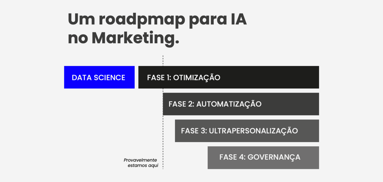 Fase 4 → Governança. A IA passa a orientar o trabalho de marketing.
