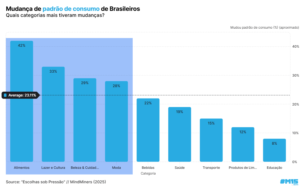 Esse cenário abre espaço para novas marcas conquistarem relevância no mercado e exige que segmentos como Alimentos, Lazer e Cultura, Beleza e Cuidados Pessoais e Moda adaptem seus discursos e estratégias à nova realidade de consumo.
