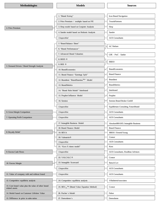 Cada consultoria puxa pra um lado, cada pesquisa usa uma metodologia, cada board entende uma coisa. Só na categoria Brand Valuation, existem mais de 52 metodologias diferentes (Salinas, 2009).