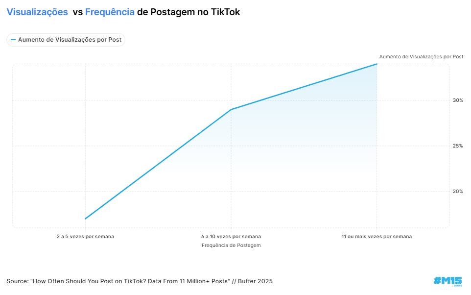 O dado confirma o que já vimos no LinkedIn: a frequência define suas chances de ganhar. Um post tem uma mediana de 500 visualizações, mas quanto mais você posta, mas chance de tem viralizar e subir a média de visualizações.